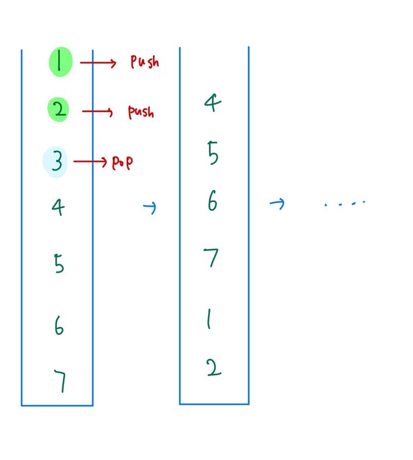 순차적으로 큐를 쌓고 k번 만큼 pop해준다. 이때 pop 해준 원소들을 다시 push를 해줘야 한다.